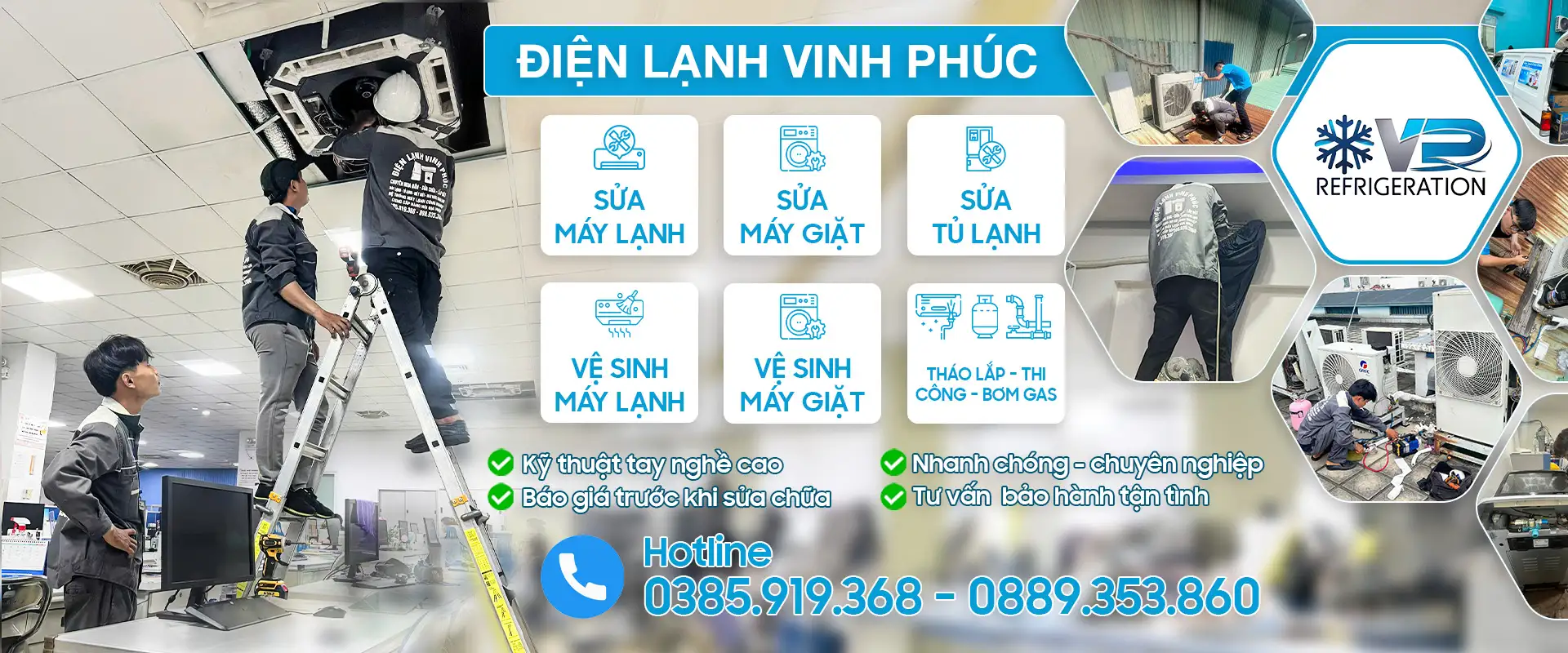 Khi máy lạnh, tủ lạnh, máy giặt, máy lạnh âm trần, máy lạnh đứng, hệ thống VRV hay các thiết bị điện công nghiệp gặp sự cố, hư hỏng — hãy liên hệ ngay với đội ngũ kỹ thuật viên chuyên nghiệp của Điện Lạnh Vinh Phúc.
